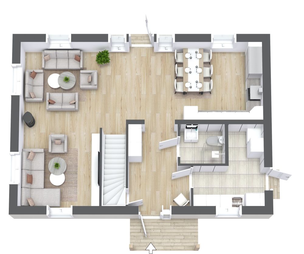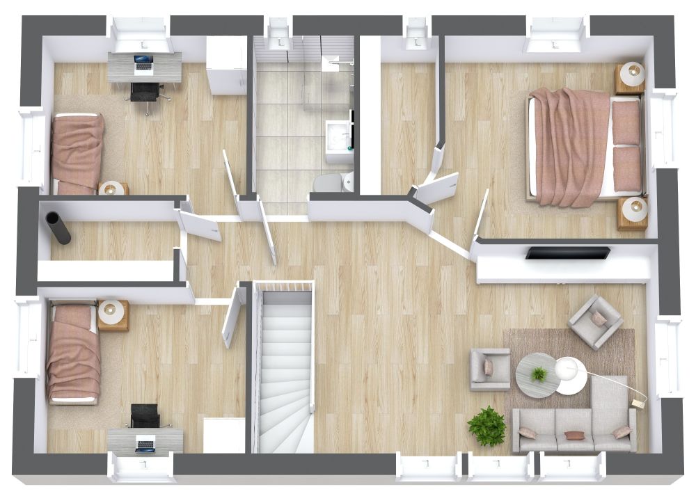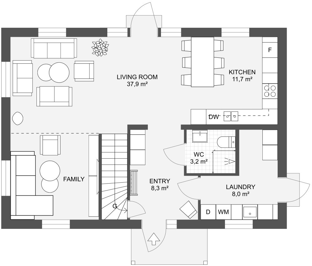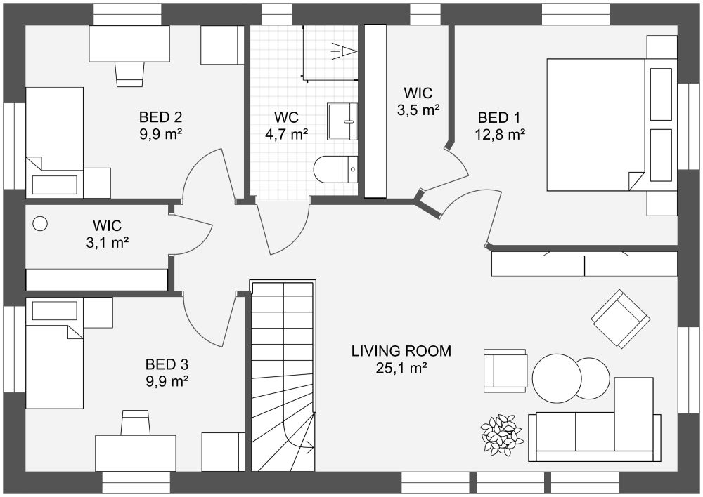 The Smultronstallet 151 layout is popular for its dual upstairs and downstairs living rooms, plus a flexible area configurable as an office/family room or 4th bedroom. The spacious front entry foyer features a coat closet, convenient seating, and shelf storage space. Nearby, you’ll find a ¾ bathroom plus an expansive laundry room complete with a washer/dryer, utility sink, linen closet, and handy door to the outside. A light-and-bright great room features windows and a door that opens to the backyard. The L-shaped kitchen includes all the standard appliances and space for either an island or a large dining table. Adjacent to the living room, a customizable family room area can optionally be closed in to create a private bedroom or office. Upstairs, a large primary bedroom with a walk-in closet and two sizable secondary bedrooms share a ¾ bathroom. Furnish the generous upstairs open space as a teen room, kids playroom, den, or office.